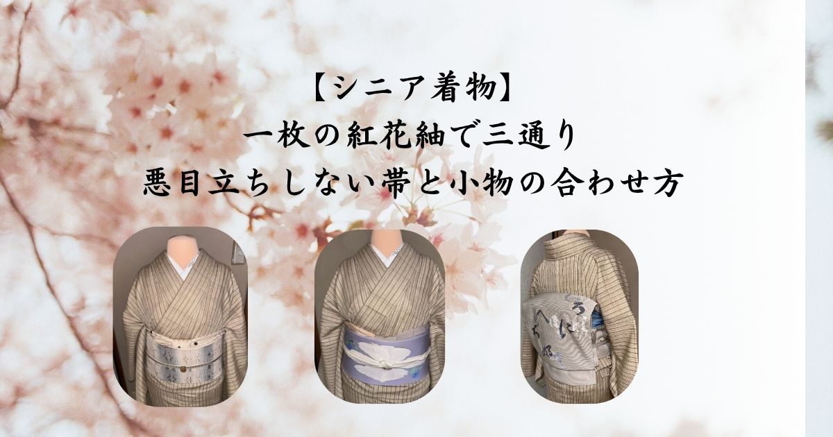 今回は、一枚の紅花紬に帯を三本替えて、それぞれのお出かけシーンや使った小物をご紹介します。